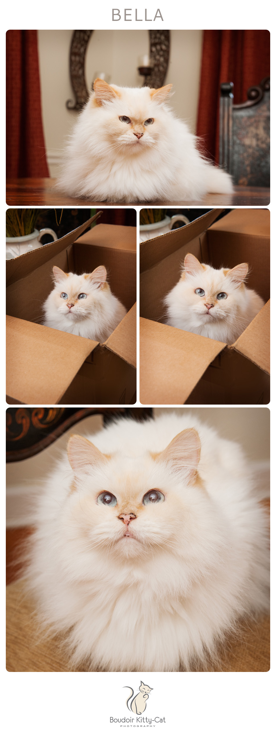 Photographing someone whom I’ve met for the first time can be a little nerve wracking for both parties. When doing a Bouddoir Kitty-Cat Session I go to the home of the cat and guardian. This is the situation I believe is most comfortable for the cat, since they are in their own environment where they feel secure. I know guardians might feel a little nervous about a stranger coming into their home to photograph them as well. It is my hope all nerves quickly subside within moments of interacting with both cats and guardians. When I met Kate and her three handsome boys, I felt like I was meeting an old friend. Her boys were full of charm and seeing Kate’s face radiate with a smile whenever they did something cute was so heartwarming. Our time together evaporated so quickly. Meet Kate and her family!