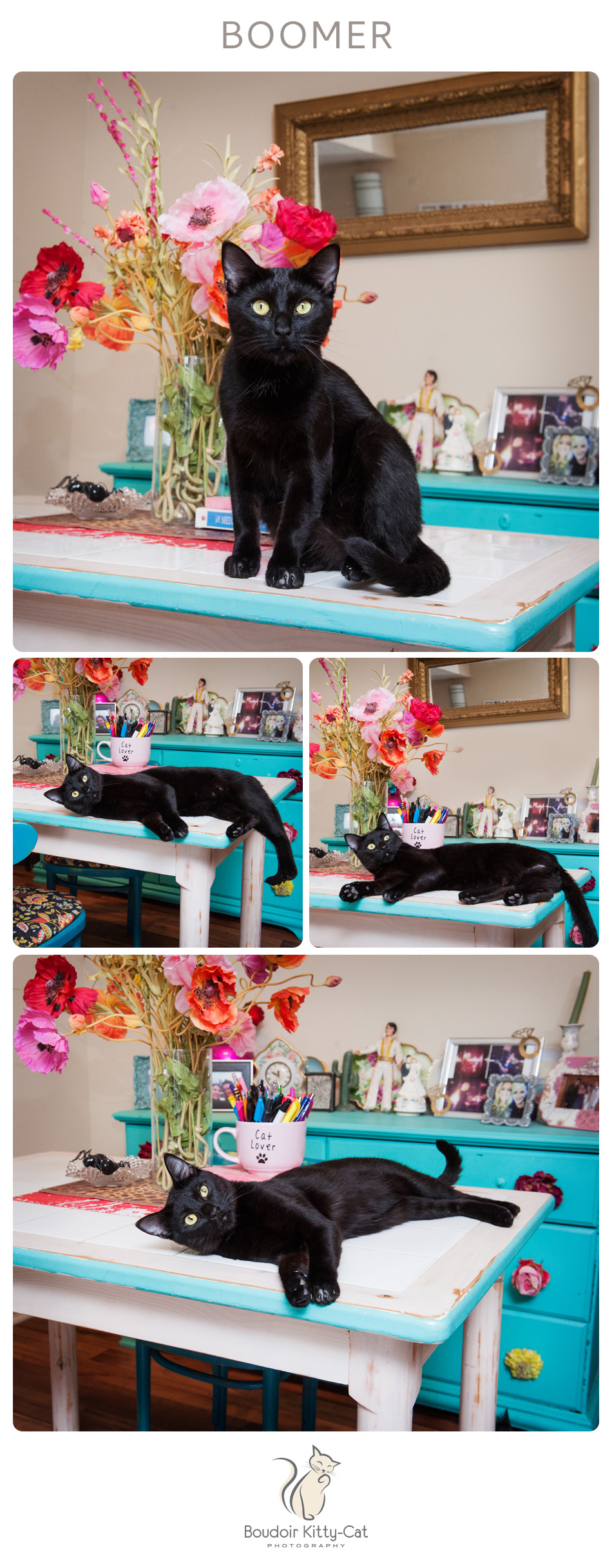 Photographing someone whom I’ve met for the first time can be a little nerve wracking for both parties. When doing a Bouddoir Kitty-Cat Session I go to the home of the cat and guardian. This is the situation I believe is most comfortable for the cat, since they are in their own environment where they feel secure. I know guardians might feel a little nervous about a stranger coming into their home to photograph them as well. It is my hope all nerves quickly subside within moments of interacting with both cats and guardians. When I met Kate and her three handsome boys, I felt like I was meeting an old friend. Her boys were full of charm and seeing Kate’s face radiate with a smile whenever they did something cute was so heartwarming. Our time together evaporated so quickly. Meet Kate and her family!